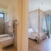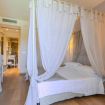 La deluxe di 19 mq è cosi composta: camera con letto matrimoniale a baldacchino e un bagno completo elegante in marmo privato con doccia.